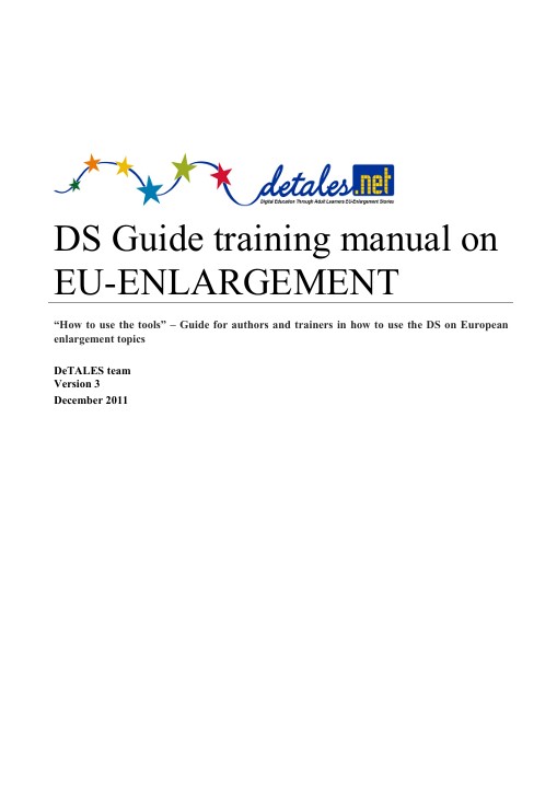 Familiarizing with other cultures supports the process of European integration and should include all target groups, especially low-skilled adults, seniors and mature employees, who are the less likely to be involved in adult education activities. The Grundtvig multilateral project DeTALES derives its rationale from this statement and investigates the impact of EU enlargement focusing on the recently added member states in particular on how they have integrated into the EU and the old ones and investigates the expectations of the negotiating members through the following topics: opening of frontiers/mobility, European labour market, European cultural identities and diversities of new and old members.